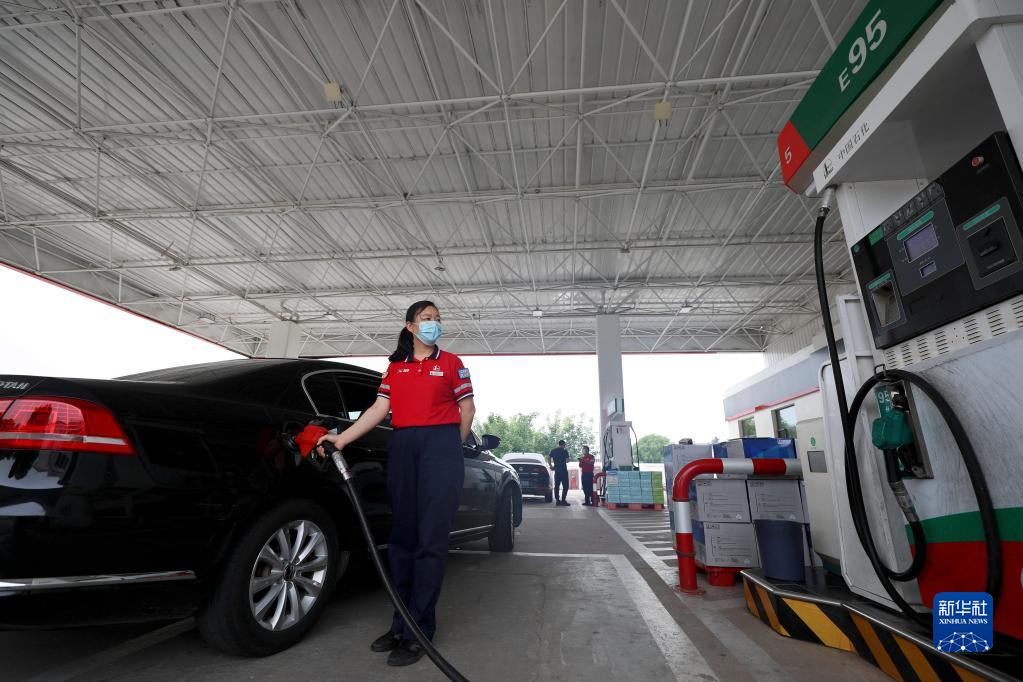 6月28日,河北省邢臺市任澤區一家加油站的工作人員在給汽車(chē)加油。