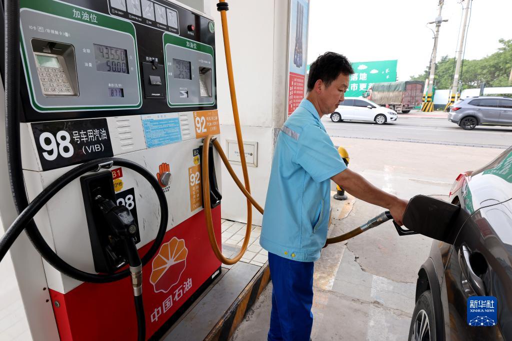 6月28日,山東省棗莊市永安鎮一加油站工作人員在給汽車(chē)加油。