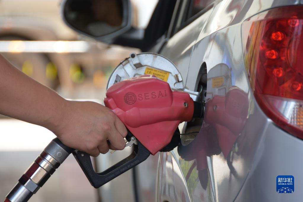 6月28日,在云南省蒙自市一加油站,工作人員在給汽車(chē)加油。