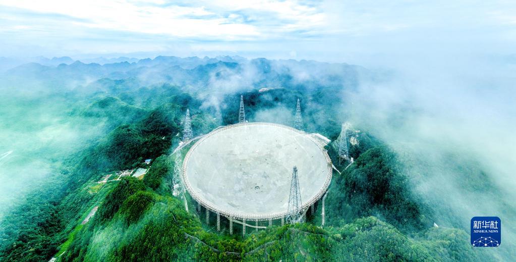6月23日拍攝的“中國天眼”全景(維護保養期間拍攝,無(wú)人機照片)。