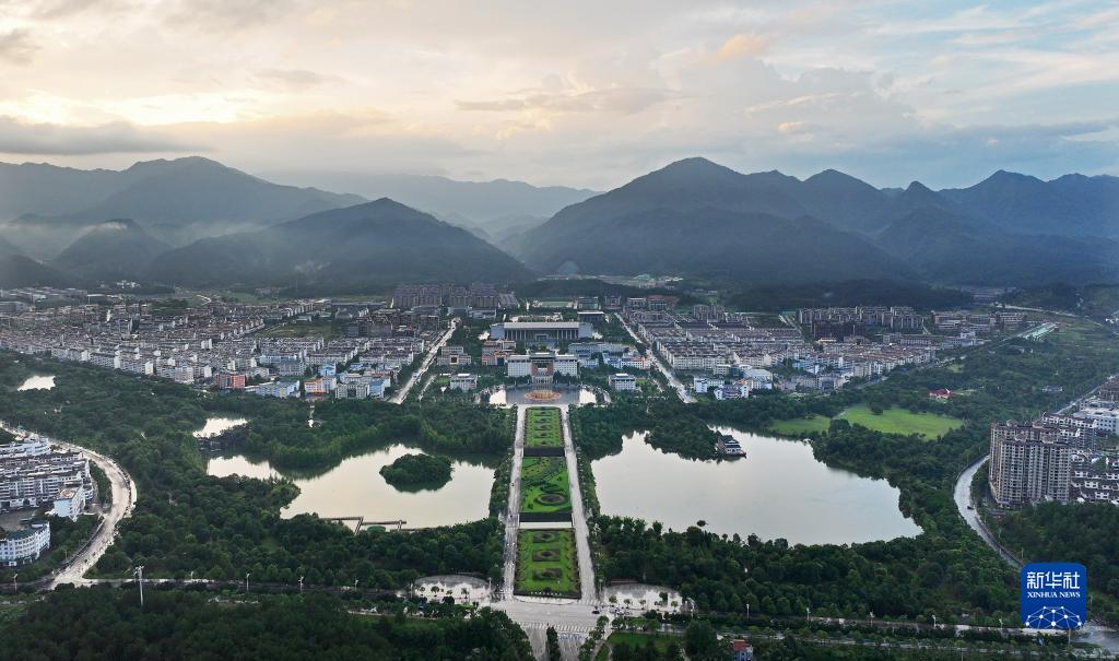 6月27日拍攝的井岡山新城區(無(wú)人機照片)。