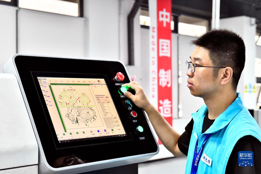 6月29日,在日照高新技術(shù)產(chǎn)業(yè)開(kāi)發(fā)區生命大健康產(chǎn)業(yè)園,工作人員在操作設備加工義齒。
