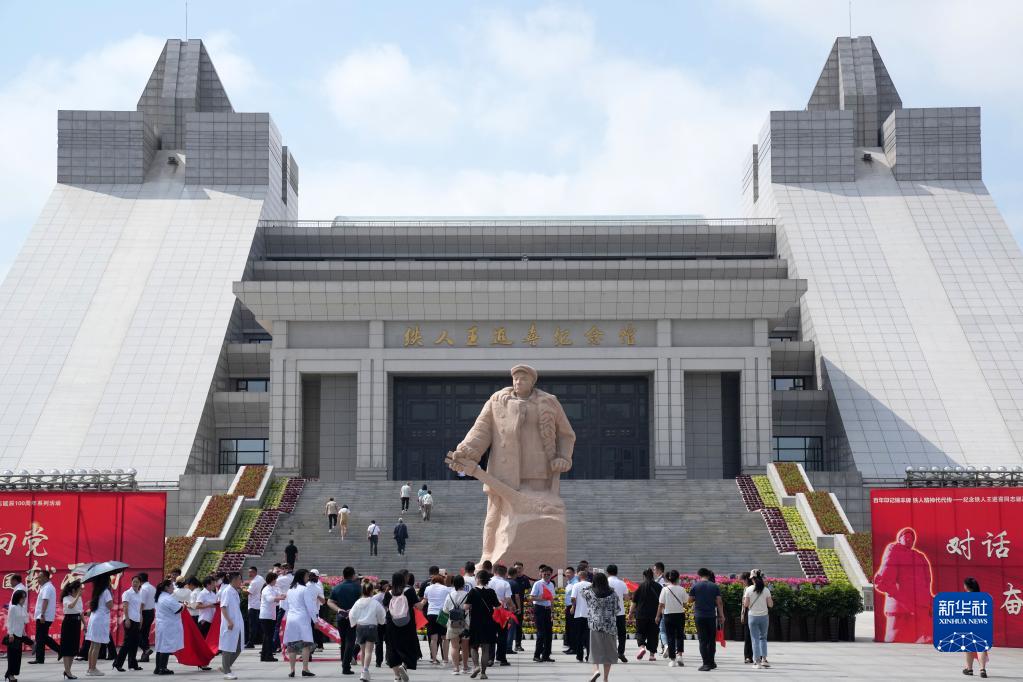 6月28日,觀(guān)眾走入鐵人王進(jìn)喜紀念館參觀(guān)。