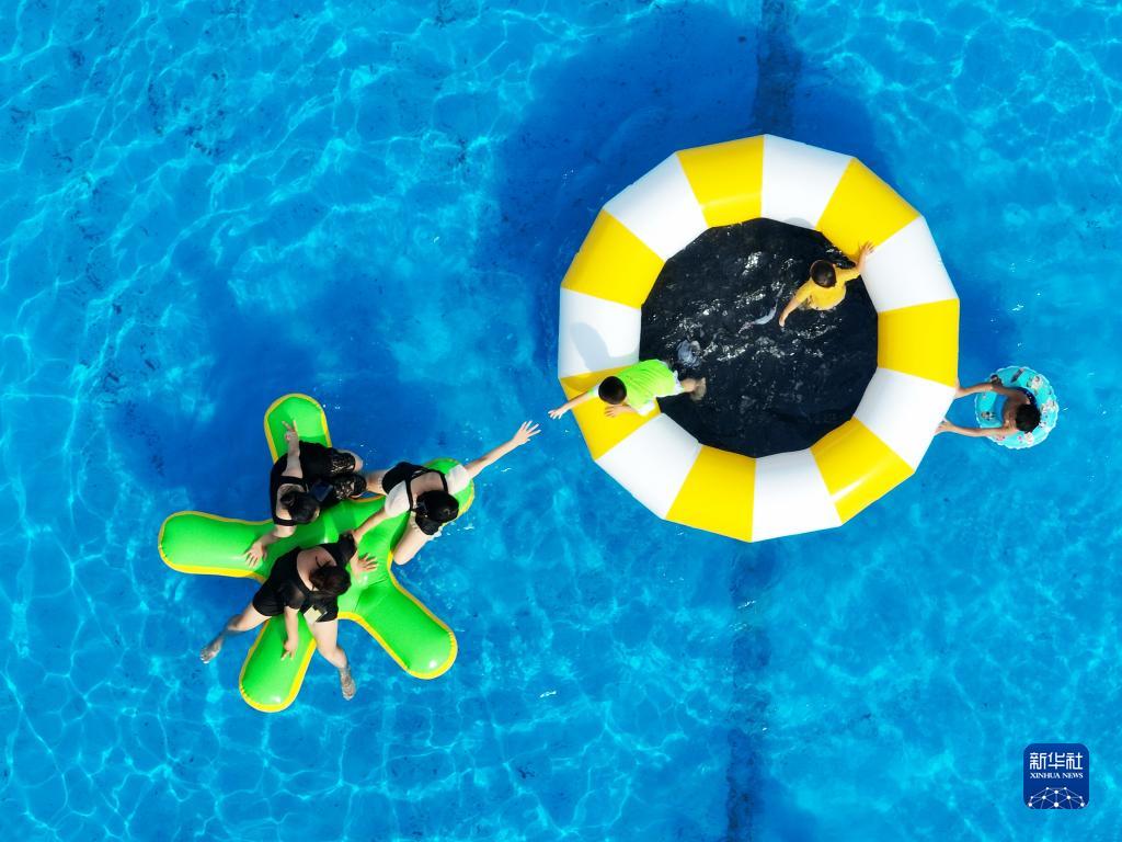 炎炎夏日,人們前往水上樂(lè )園,體驗趣味水上活動(dòng),戲水消暑,享受清涼。