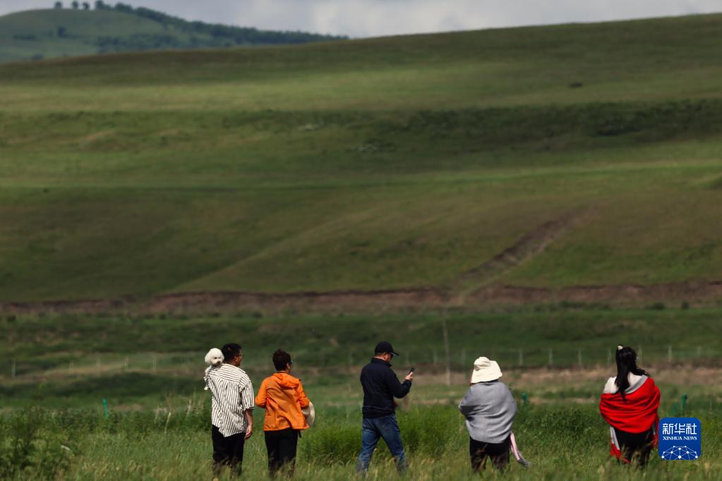6月29日,游客在蒙兀室韋蘇木一處游船碼頭附近游覽。