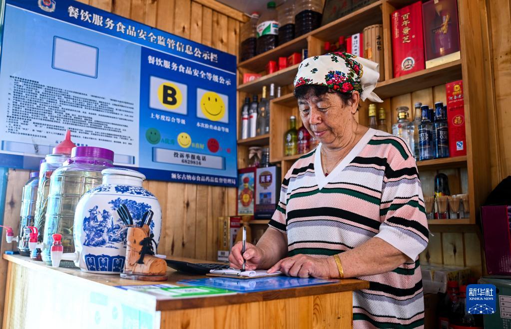6月28日,卓婭在記賬。卓婭一家從2003年開(kāi)始經(jīng)營(yíng)家庭游,從最初的4間客房已經(jīng)發(fā)展為24間,還能提供旅游項目服務(wù)。