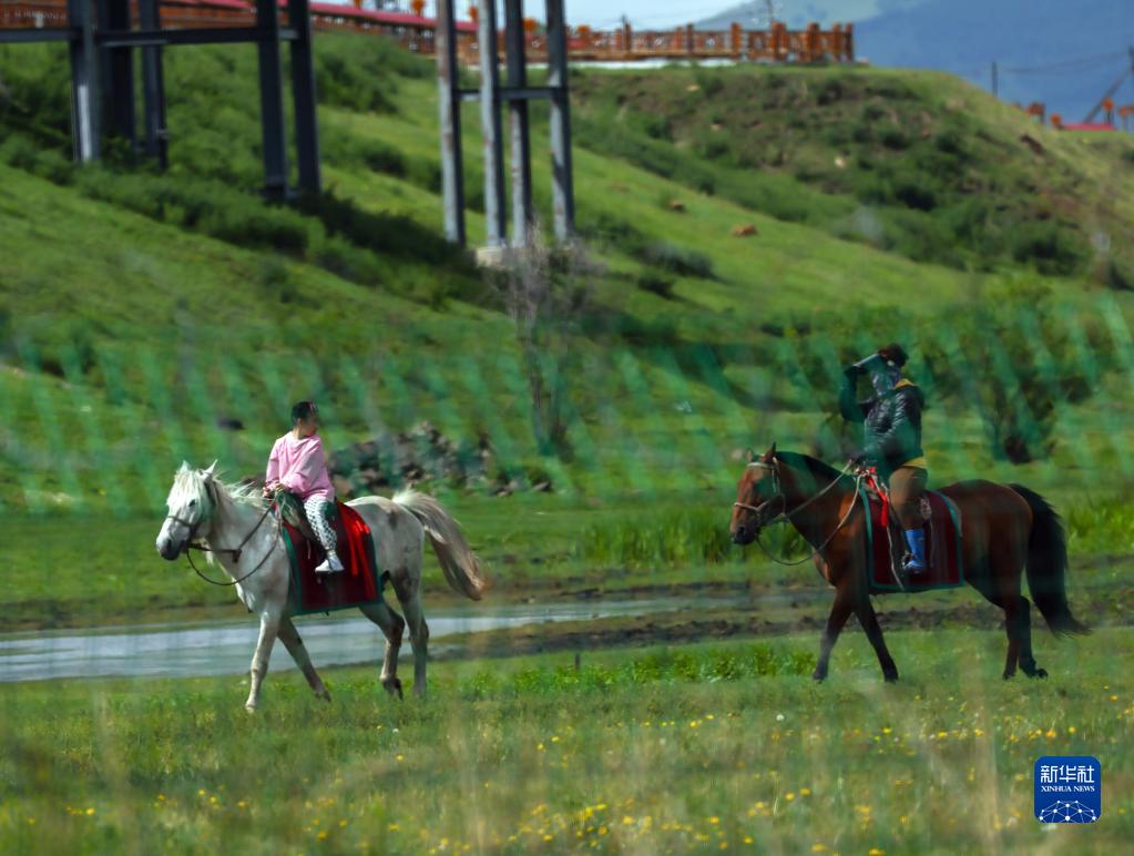 6月29日,游客在蒙兀室韋蘇木一處馬場(chǎng)騎馬。