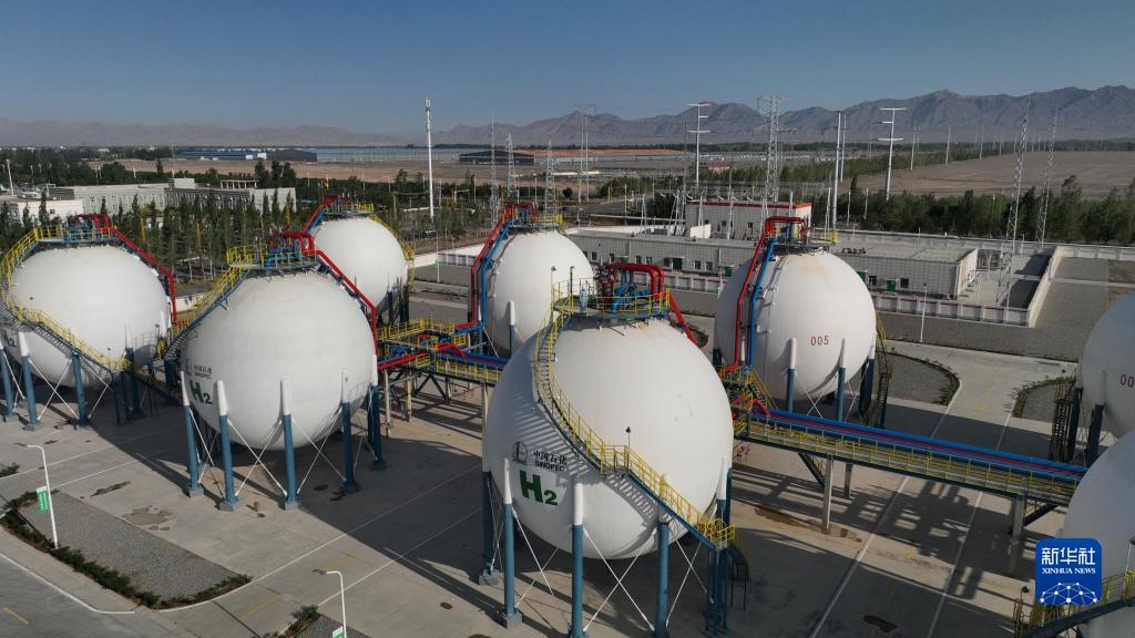 這是6月30日拍攝的中國石化新疆庫車(chē)綠氫示范項目制氫廠(chǎng)儲氫罐區(無(wú)人機照片)。