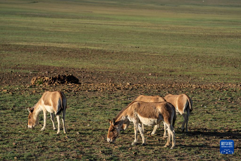 在哲古草原上覓食的藏野驢(6月28日攝)。