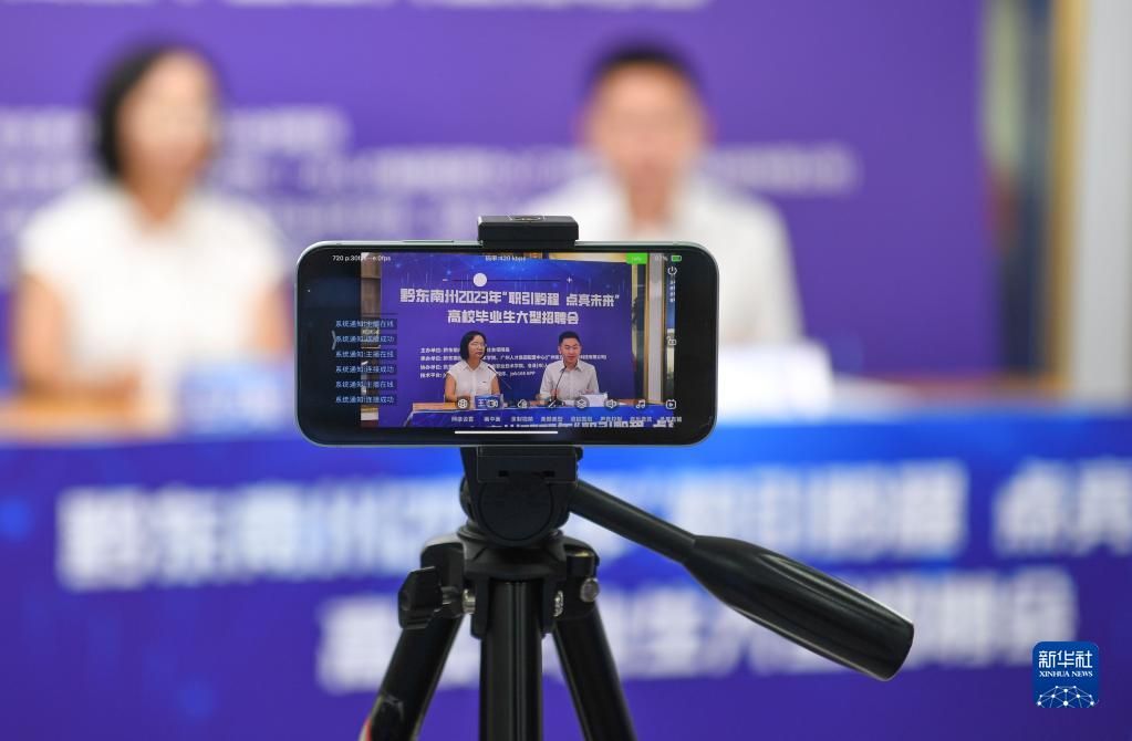 這是6月30日拍攝的貴州省黔東南州2023年“職引黔程·點(diǎn)亮未來(lái)”高校畢業(yè)生線(xiàn)上招聘會(huì )現場(chǎng)。