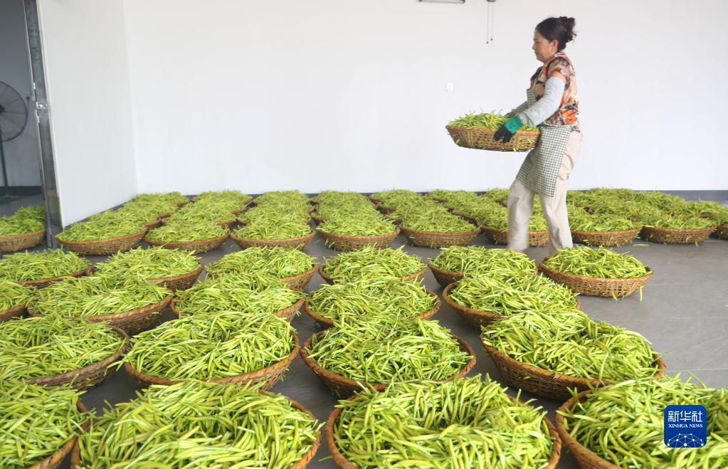 連日來(lái),湖南省衡陽(yáng)市祁東縣黃花菜進(jìn)入采收旺季,當地菜農搶抓農時(shí)采摘、加工、晾曬黃花菜。祁東種植黃花菜有著(zhù)悠久的歷史,形成了從種植到加工全鏈條覆蓋,有效帶動(dòng)當地農戶(hù)增收致富。新華社發(fā)(曹正平攝)