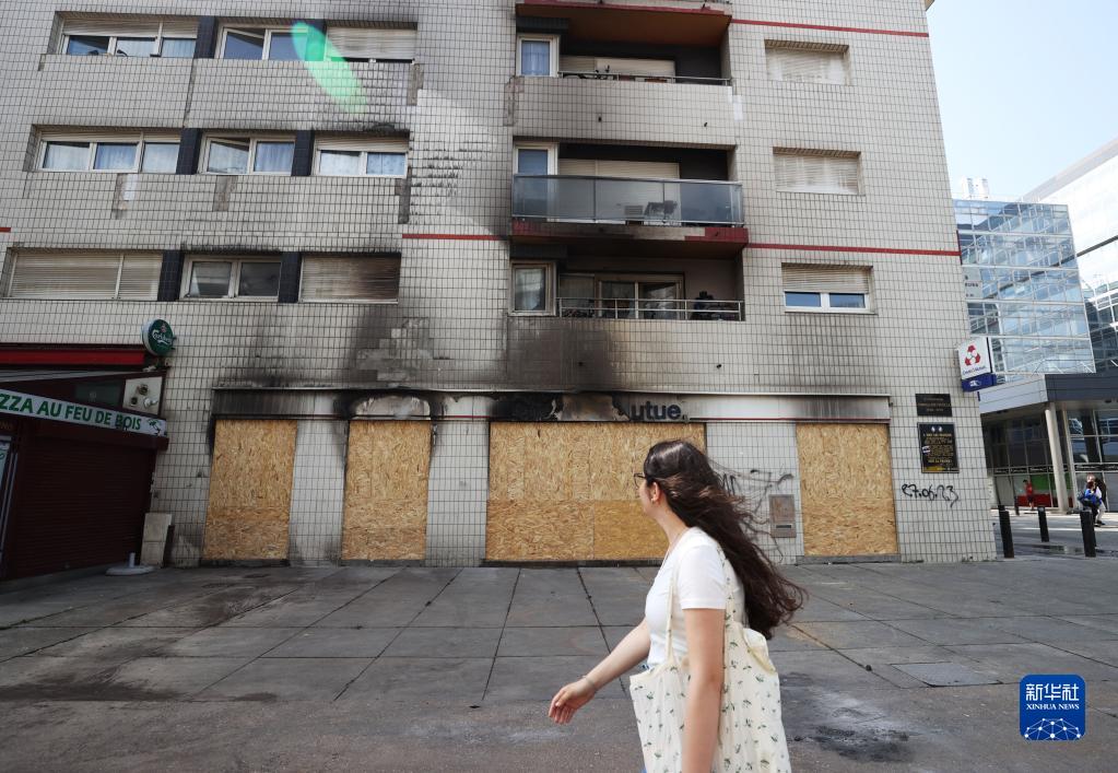 6月30日,在法國上塞納省楠泰爾市,一家銀行所在的建筑被縱火破壞。