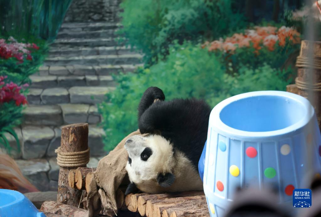 入夏以來(lái),在位于青海省西寧市的西寧熊貓館,飼養員用胡蘿卜、蘋(píng)果、番茄、竹子等食材,為館里的4只大熊貓進(jìn)行食物豐容,調整飲食結構。