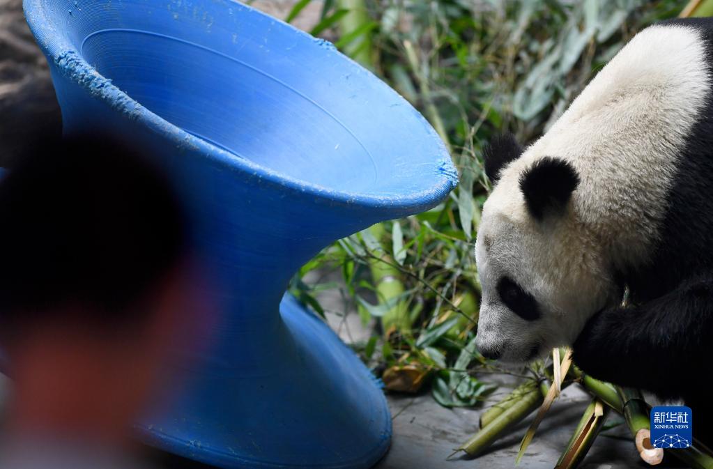 青海西寧:大熊貓樂(lè )享高原夏日生活