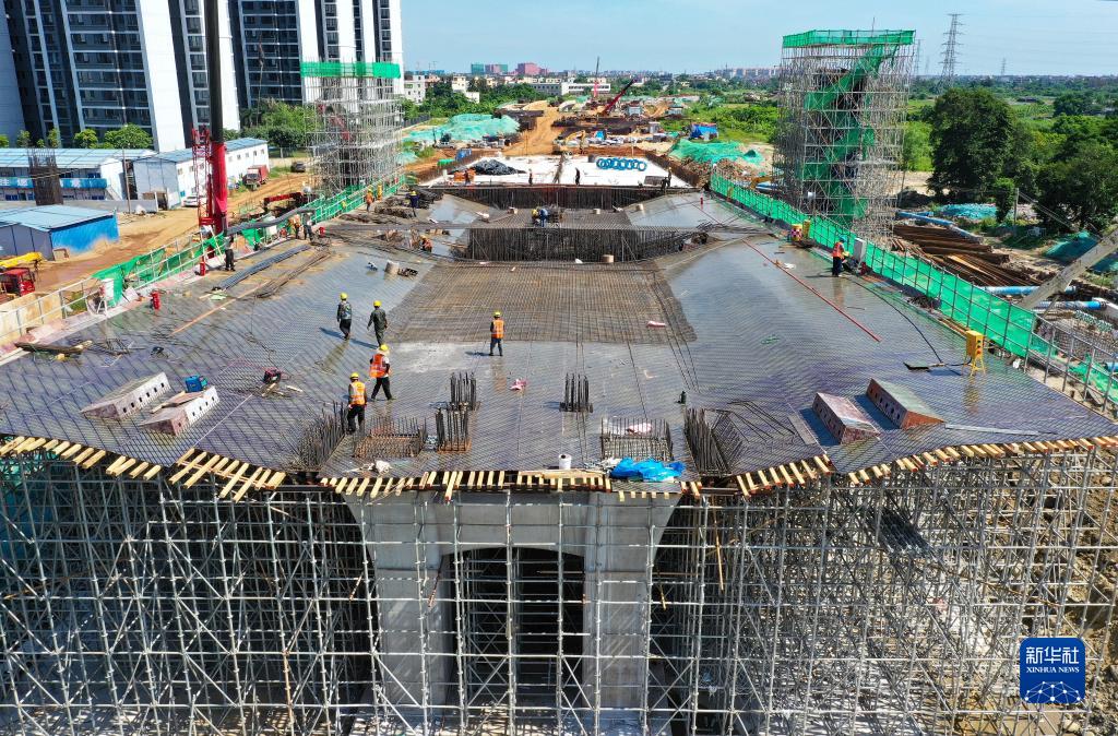 這是7月1日拍攝的??诮瓥|新區快速通道項目(無(wú)人機照片)。