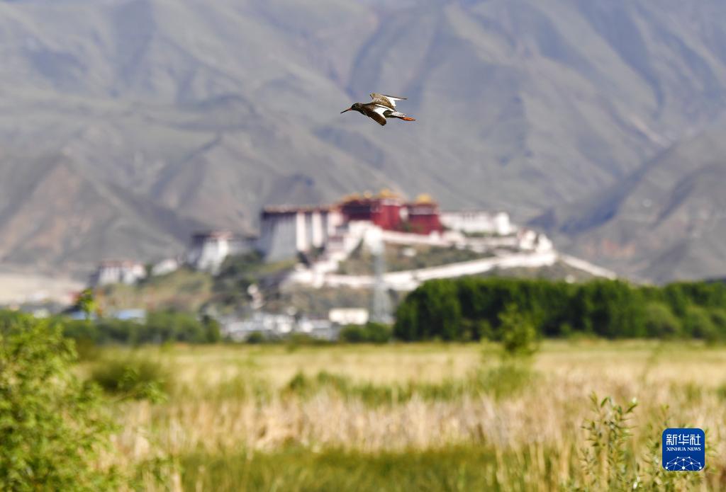 夏季,進(jìn)入繁殖期的紅腳鷸在拉薩市拉魯濕地國家級自然保護區里鳴叫、翔舞。