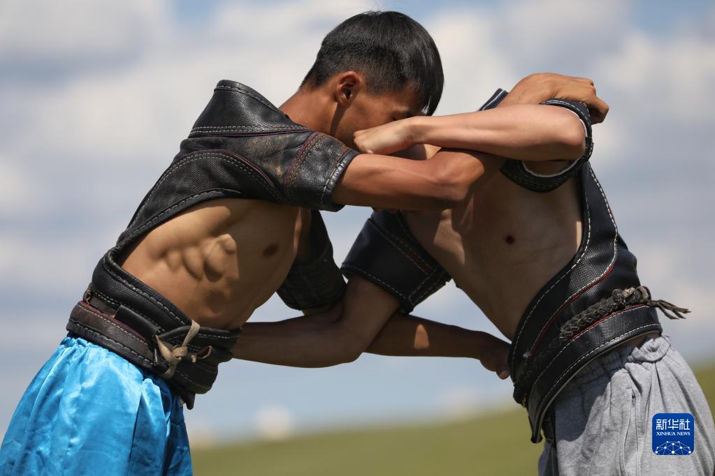 7月1日,小選手們在草地上參加搏克比賽。