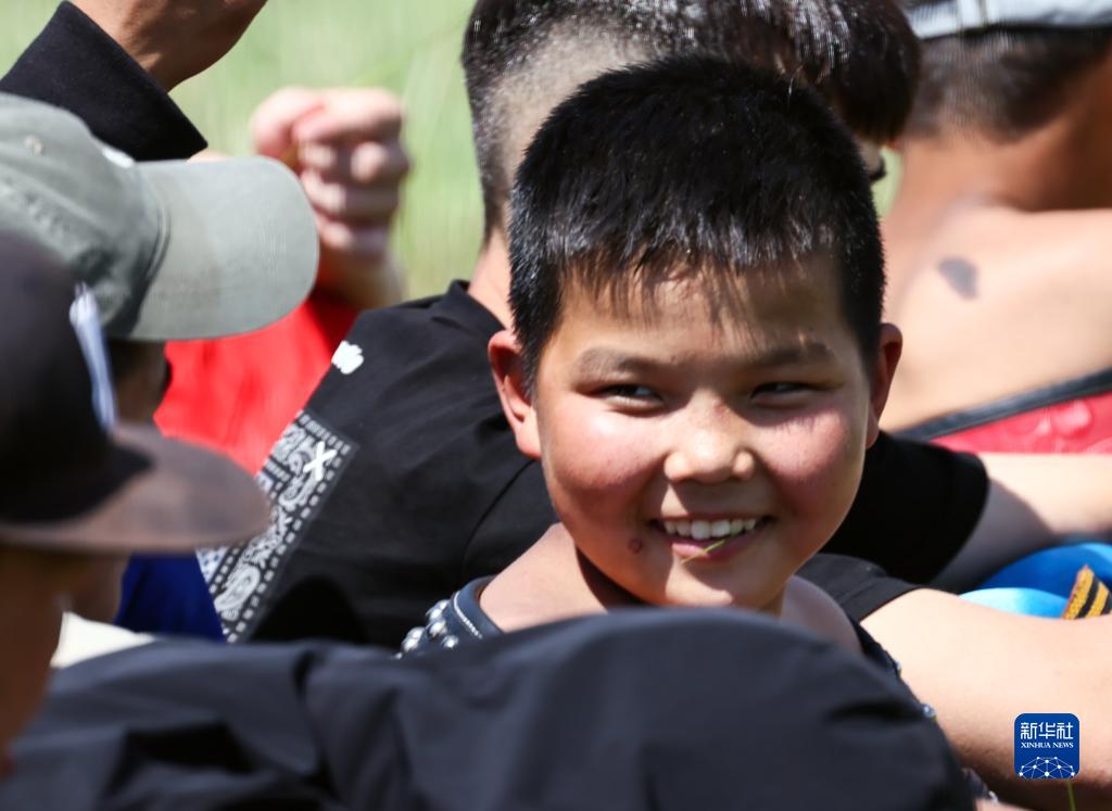 7月1日,參加搏克比賽的小選手們準備上場(chǎng)。
