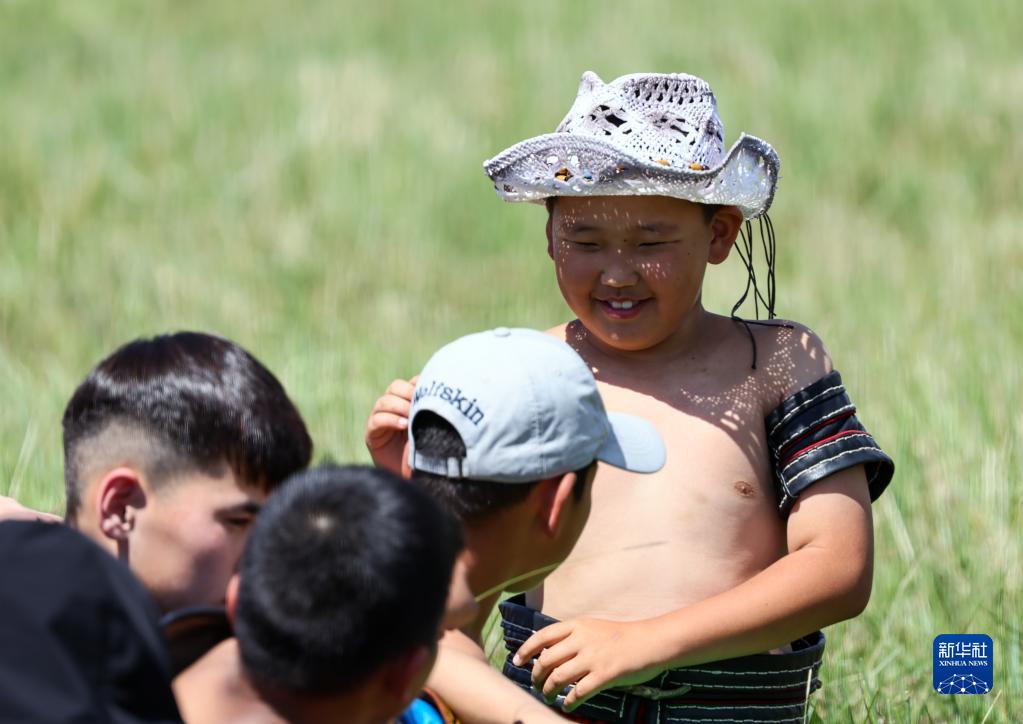 7月1日,參加搏克比賽的小選手們準備上場(chǎng)。