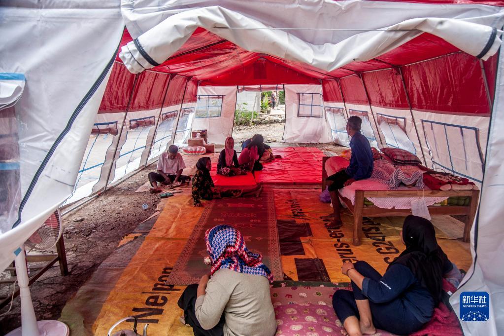 7月1日,在印度尼西亞日惹特區帕卡雷霍村,人們在臨時(shí)避難所內躲避余震。