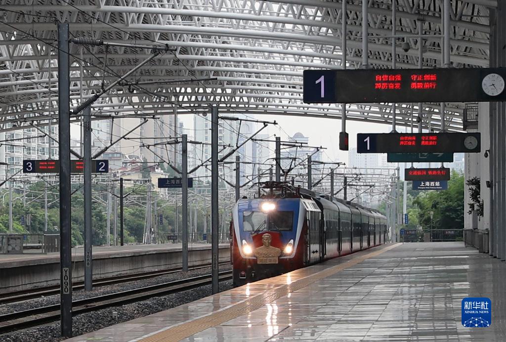 6月30日,上海至嘉興的Y701次“南湖·1921”紅色旅游列車(chē)抵達鐵路上海西站。