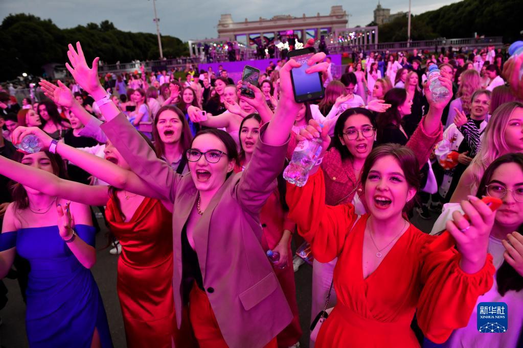莫斯科高爾基公園當日為中學(xué)畢業(yè)生舉行慶?;顒?dòng)。