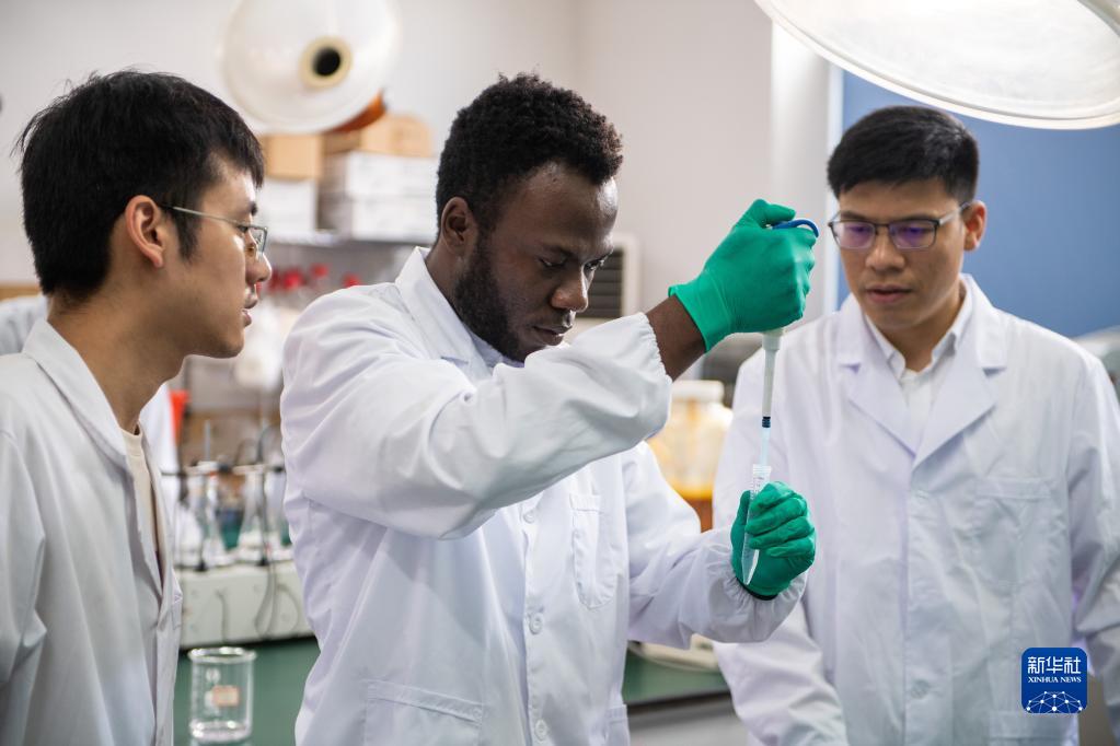 6月26日,在湖南農業(yè)大學(xué)環(huán)境微生物學(xué)實(shí)驗室,尼克(中)在導師周耀渝(右)的指導下做實(shí)驗。