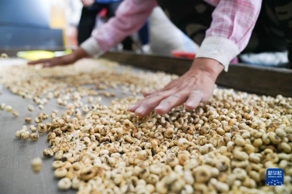 在滿(mǎn)江紅村的鐵力市裕盛平貝種植農民專(zhuān)業(yè)合作社,工人在挑選平貝(7月1日攝)。