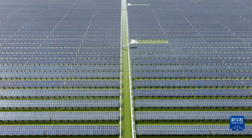 這是7月1日拍攝的龍源天津海晶鹽光互補項目一景(無(wú)人機照片)。