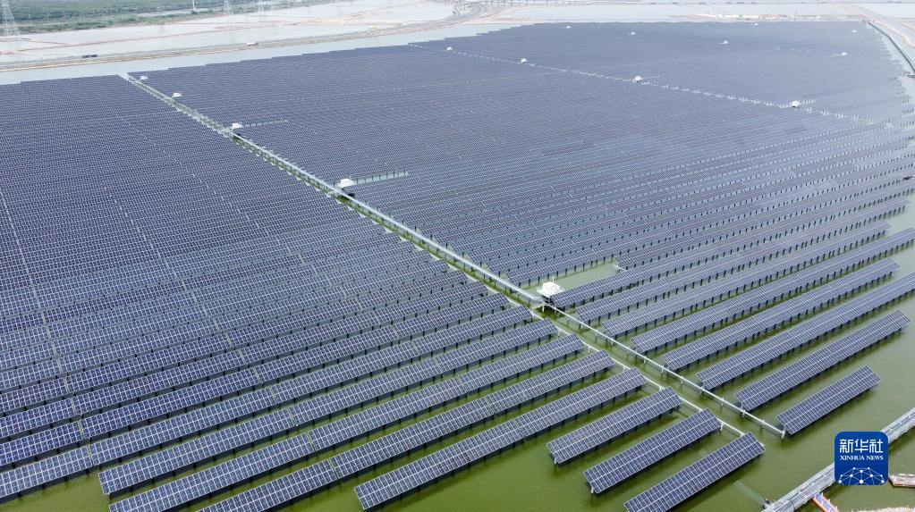 這是7月1日拍攝的龍源天津海晶鹽光互補項目一景(無(wú)人機照片)。