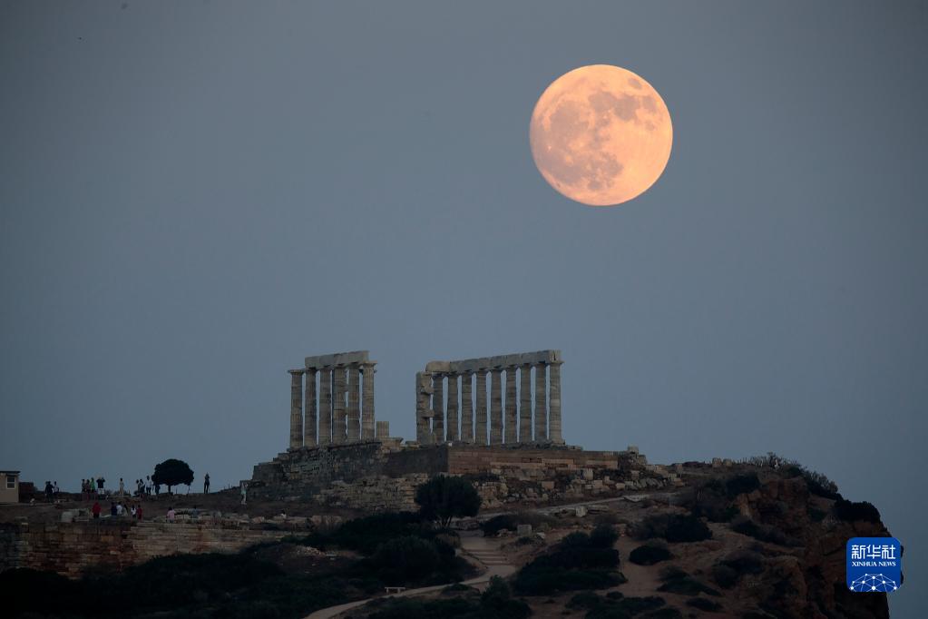 7月2日,一輪滿(mǎn)月出現在希臘蘇尼翁的海神廟遺址上空。