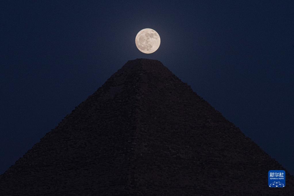 這是7月2日在埃及吉薩胡夫大金字塔旁拍攝的滿(mǎn)月。