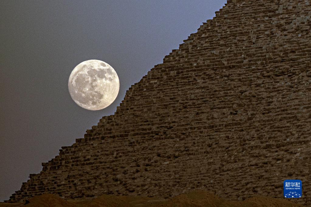 這是7月2日在埃及吉薩胡夫大金字塔旁拍攝的滿(mǎn)月。