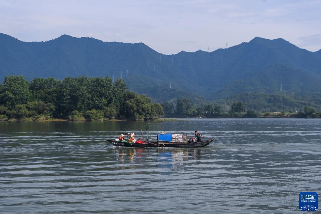 7月3日,漁民駕駛著(zhù)滿(mǎn)載的漁船行駛在富春江面上。