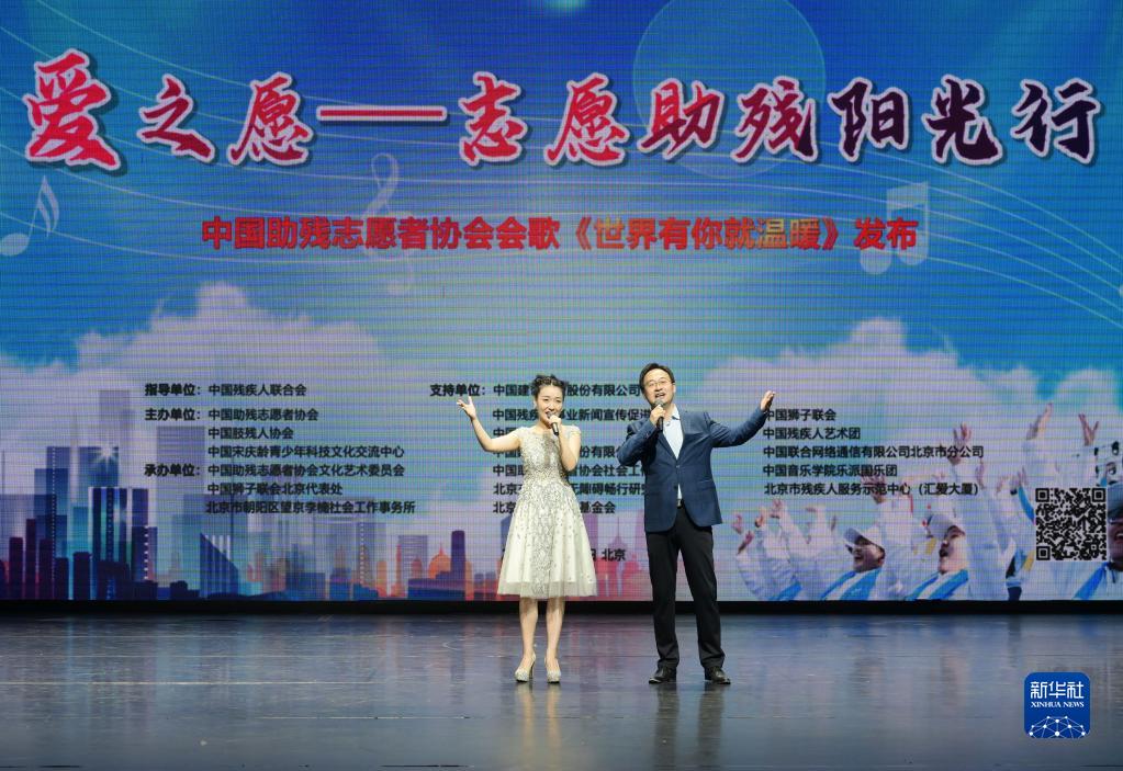 當日,“‘愛(ài)之愿’志愿助殘陽(yáng)光行”活動(dòng)在北京舉行,活動(dòng)上發(fā)布了中國助殘志愿者協(xié)會(huì )會(huì )歌《世界有你就溫暖》。