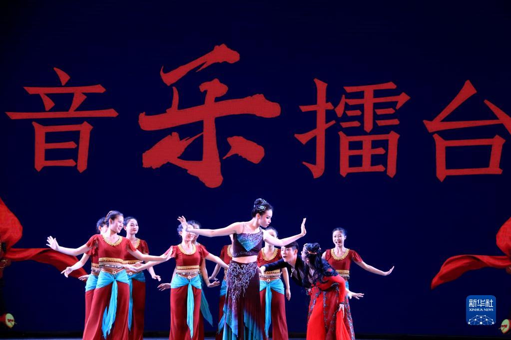 7月3日,在西北師范大學(xué)敦煌學(xué)院實(shí)驗劇場(chǎng),舞者與西北師范大學(xué)敦煌學(xué)院學(xué)生共同表演。