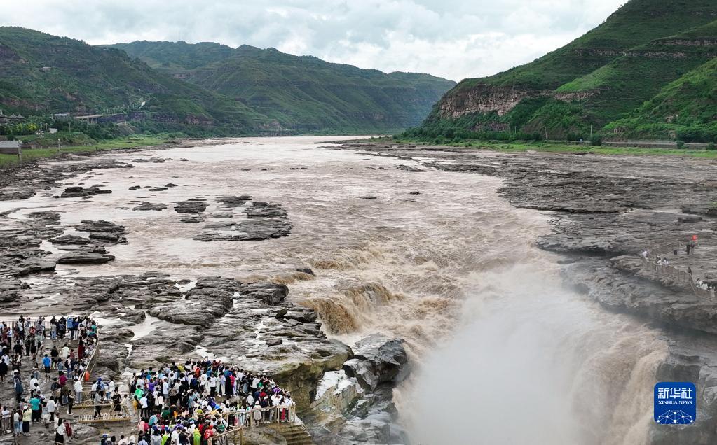 暑期,眾多游客來(lái)到位于陜西宜川縣和山西吉縣交界處的黃河壺口瀑布游覽,領(lǐng)略壺口瀑布美景。