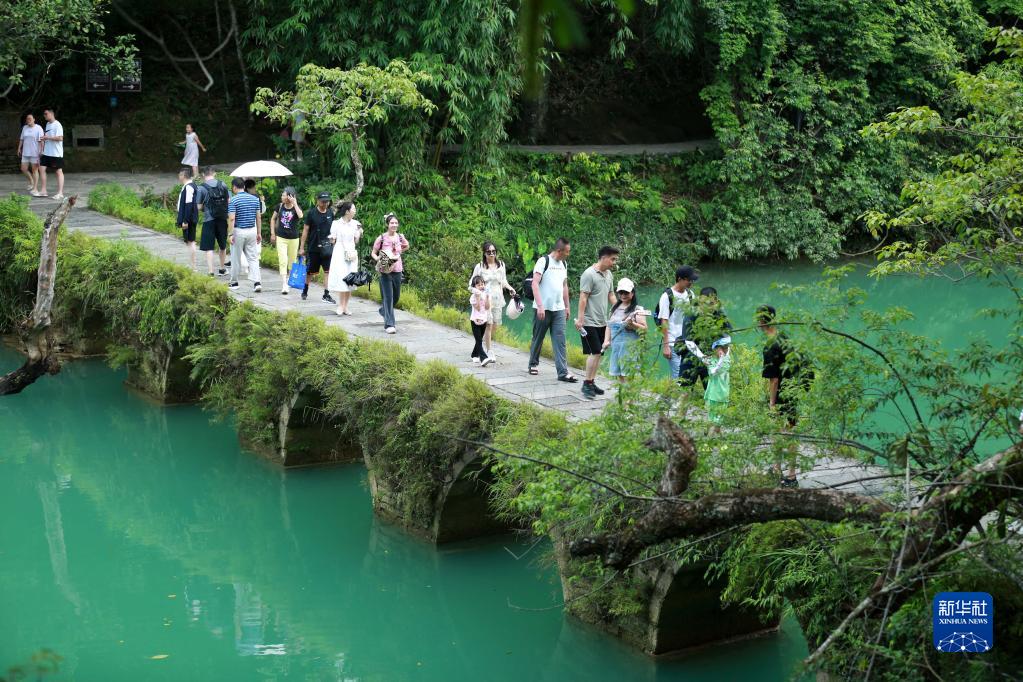 7月2日,游客在貴州省荔波縣小七孔景區游玩。
