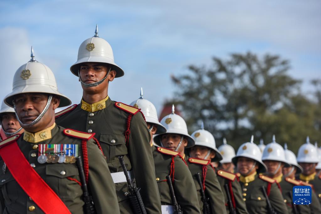 7月4日,軍人在湯加首都努庫阿洛法參加閱兵式。