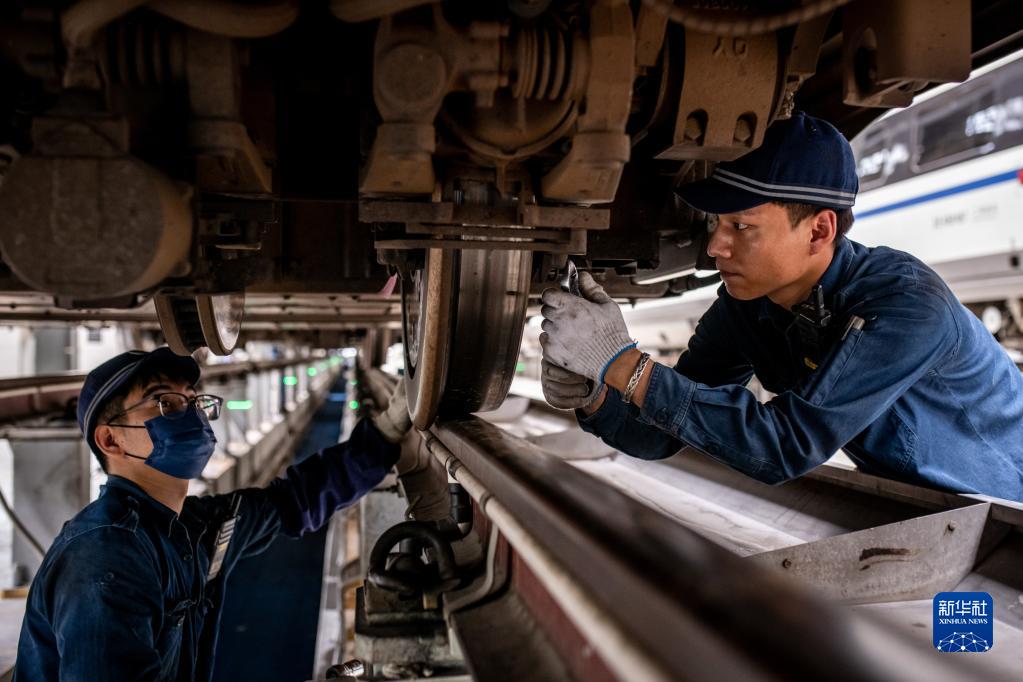 暑運期間,中國鐵路昆明局集團有限公司昆明車(chē)輛段的工作人員加大對動(dòng)車(chē)的檢修保養力度,確保每一組動(dòng)車(chē)組“健康”上線(xiàn),守護旅客平安出行。