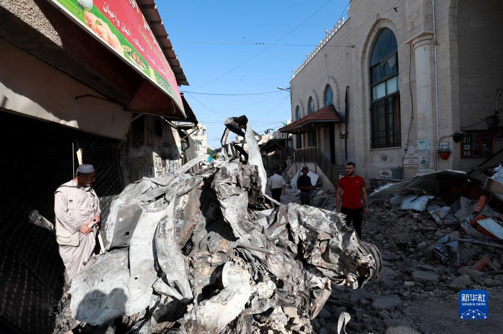 這是7月5日在約旦河西岸杰寧地區拍攝的一處雜亂的街道。