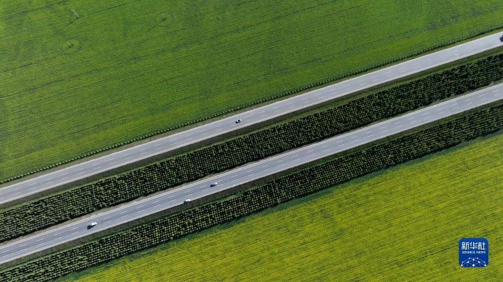 夏日,在位于祁連山腹地的青海省海北藏族自治州門(mén)源回族自治縣境內,油菜花競相綻放,花海、雪山、草原共同組成色彩斑斕的祁連山夏日畫(huà)卷。