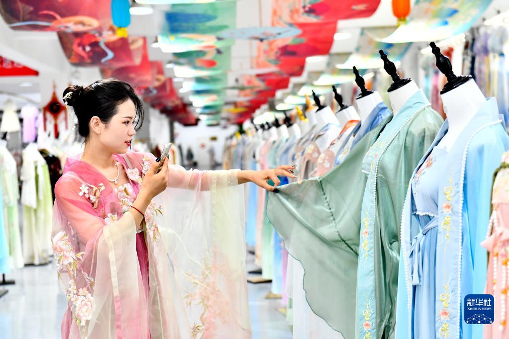 山東省曹縣依托電商資源優(yōu)勢,聚力發(fā)展漢服產(chǎn)業(yè),形成了從印染、剪裁、繡花、打版、成衣全產(chǎn)業(yè)鏈條。目前,曹縣共有漢服上下游企業(yè)2100多家,并在上海、西安、洛陽(yáng)等地設有漢服基地,展銷(xiāo)推介曹縣漢服。今年1-6月,曹縣漢服營(yíng)銷(xiāo)收入近40億元,漢服產(chǎn)業(yè)不僅成為當地群眾增收、鄉村振興的新引擎,還吸引了近兩萬(wàn)名大學(xué)生返鄉就業(yè)、創(chuàng )業(yè)。