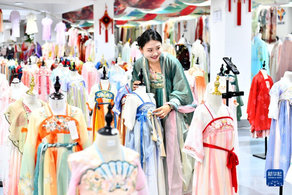 山東省曹縣依托電商資源優(yōu)勢,聚力發(fā)展漢服產(chǎn)業(yè),形成了從印染、剪裁、繡花、打版、成衣全產(chǎn)業(yè)鏈條。目前,曹縣共有漢服上下游企業(yè)2100多家,并在上海、西安、洛陽(yáng)等地設有漢服基地,展銷(xiāo)推介曹縣漢服。今年1-6月,曹縣漢服營(yíng)銷(xiāo)收入近40億元,漢服產(chǎn)業(yè)不僅成為當地群眾增收、鄉村振興的新引擎,還吸引了近兩萬(wàn)名大學(xué)生返鄉就業(yè)、創(chuàng )業(yè)。