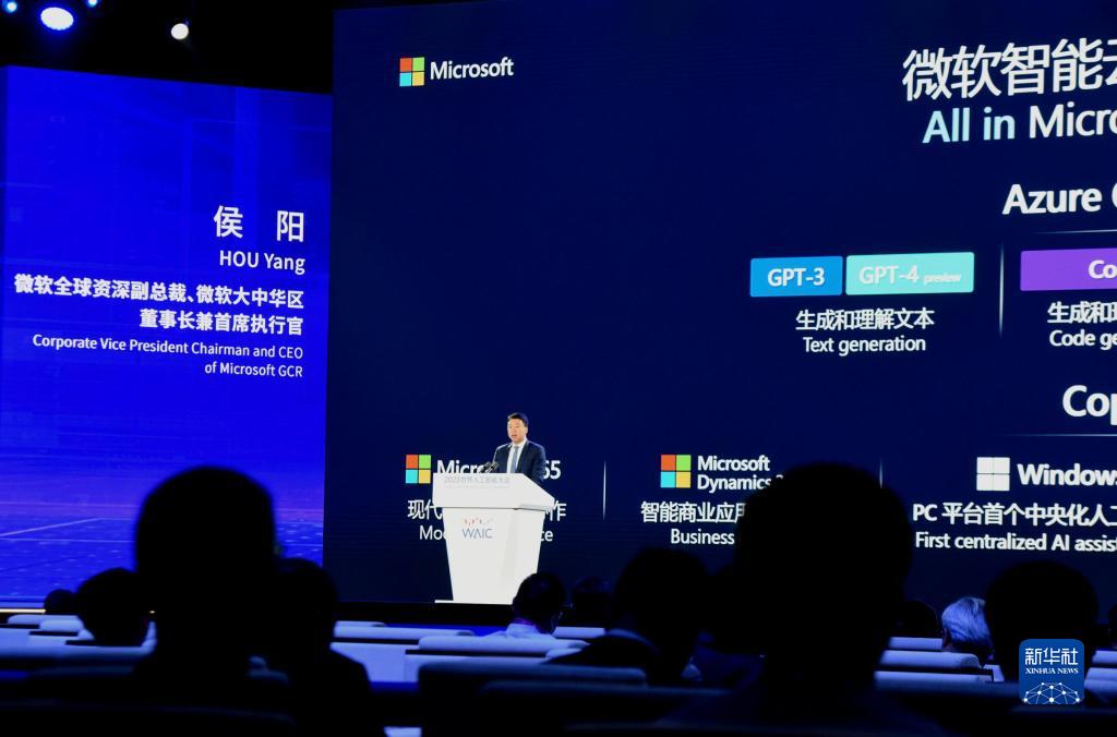 7月6日,微軟全球資深副總裁、微軟大中華區董事長(cháng)兼首席執行官侯陽(yáng)在大會(huì )上發(fā)表演講。