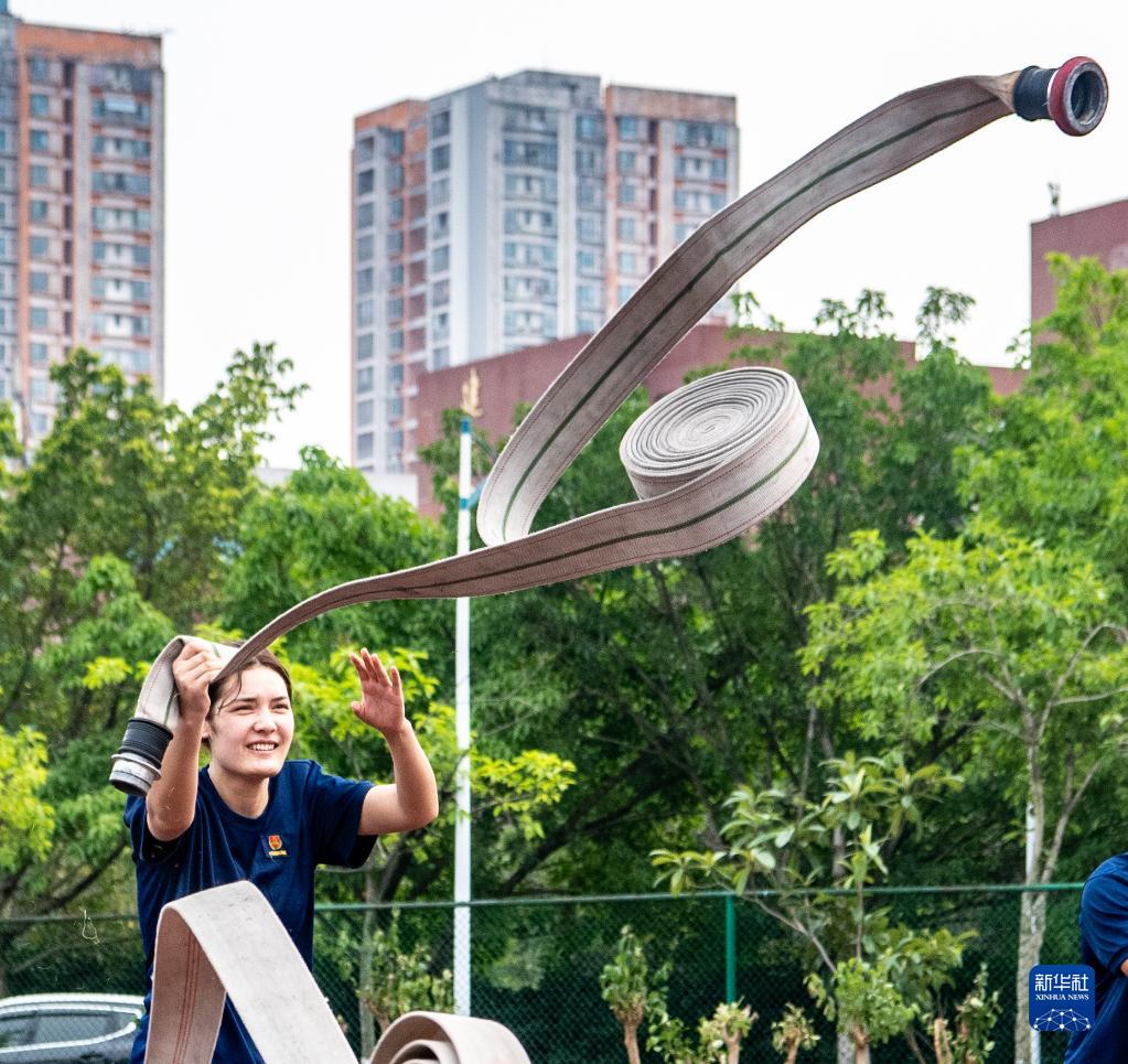 6月28日,熱依來(lái)·吉力力在進(jìn)行消防專(zhuān)業(yè)體能訓練。