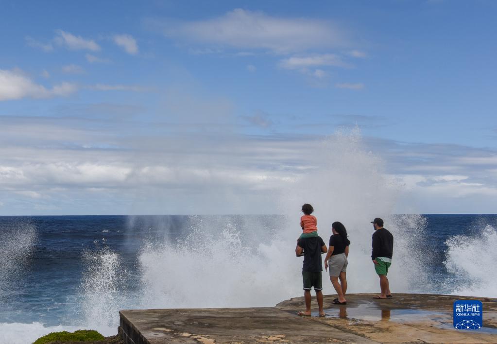 7月6日,人們在湯加首都努庫阿洛法的海岸邊觀(guān)看海浪。
