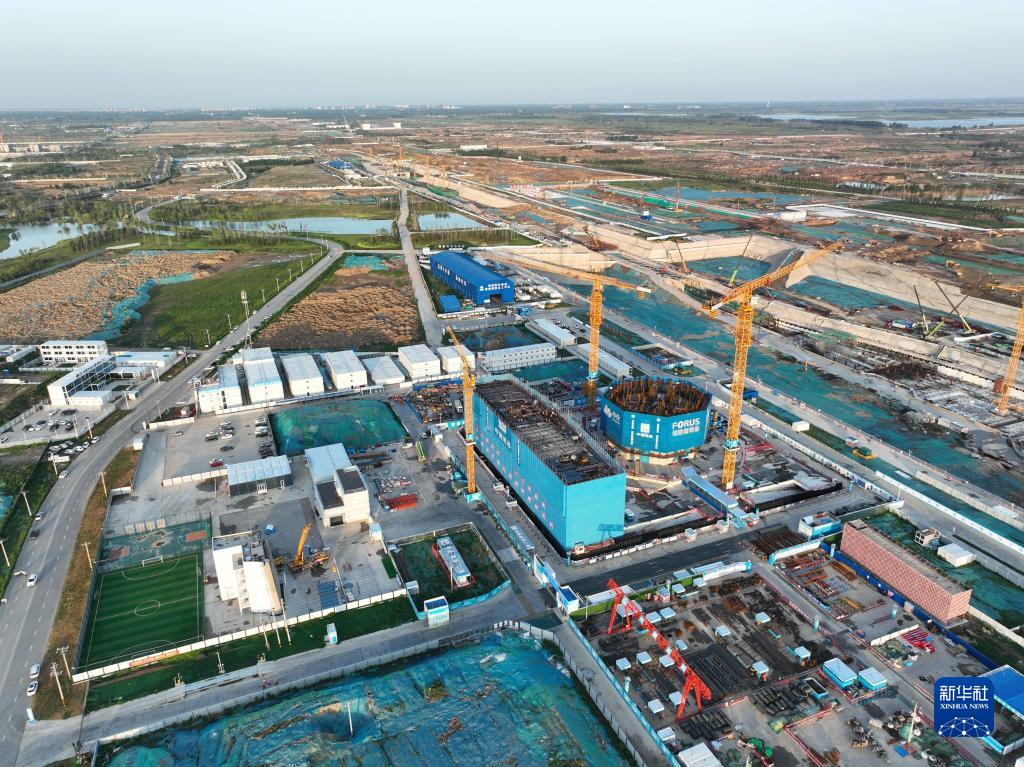 這是位于河北雄安新區啟動(dòng)區的中國中化大廈項目(7月4日攝,無(wú)人機照片)。中國中化大廈項目是一座具有白洋淀特色的“金蘆葦”造型的建筑,是啟動(dòng)區的地標之一。