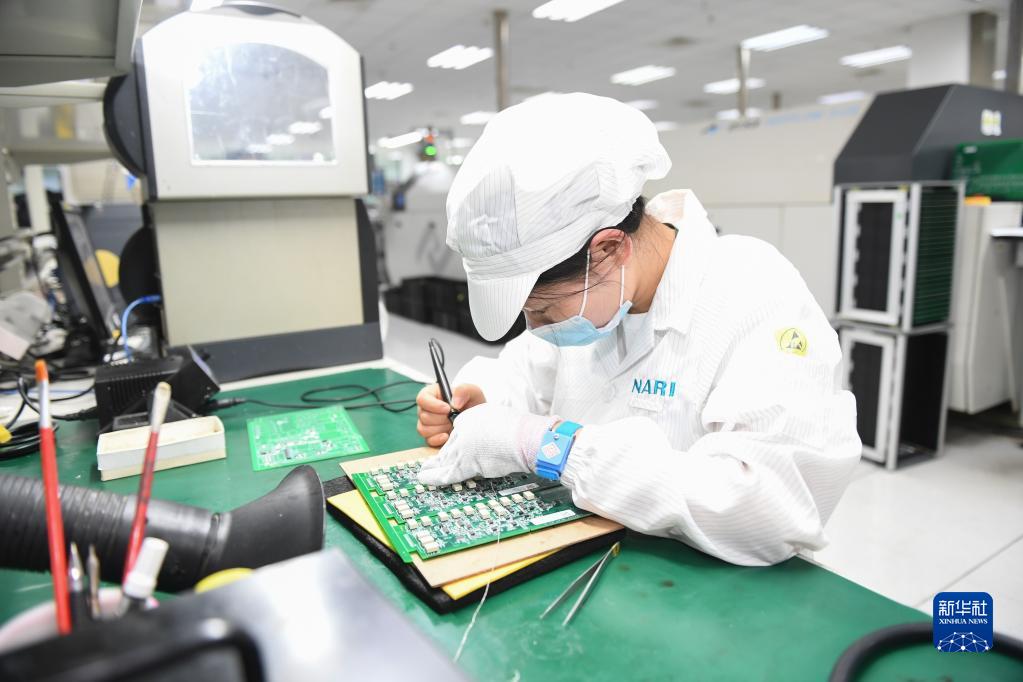 7月7日,在南瑞集團有限公司智能制造生產(chǎn)區,工人維修電路板。
