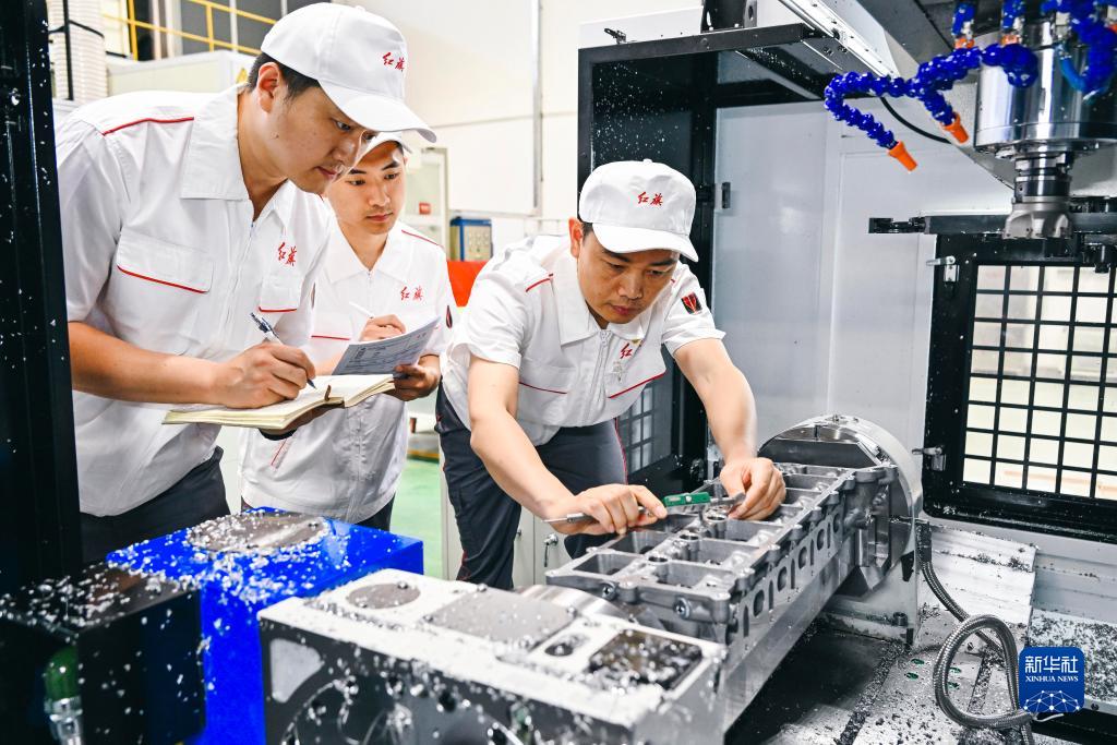 楊永修(右)在檢查試制零部件的精度(6月8日攝)。楊永修是中國一汽研發(fā)總院高級技師,他攻克了高端發(fā)動(dòng)機精密制造過(guò)程中的多項難關(guān),獲得全國技術(shù)能手、全國五一勞動(dòng)獎?wù)碌榷囗棙s譽(yù)。